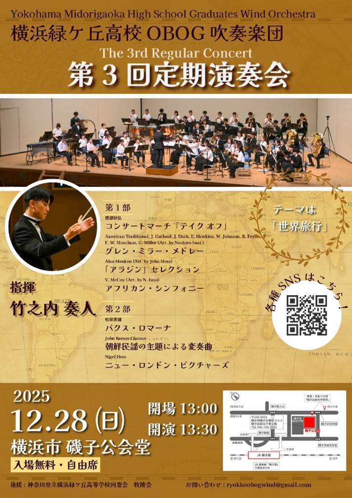 【音楽】12/28緑高OBOG吹奏楽団 第3回定期演奏会のご案内 2025/11/22