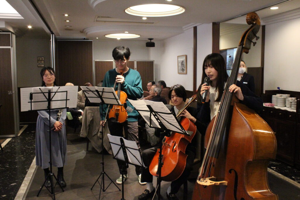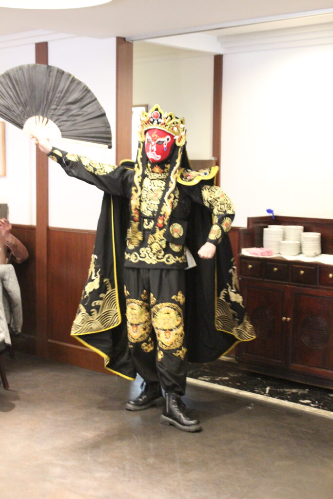 今回の新年の集いは青年部メンバーによる企画として、管弦楽部OBOGによる管弦楽アンサンブルの演奏が披露され、新年にふさわしく、ヨハン・シュトラウスのポルカ「雷鳴と電光」が演奏されました。さらに特別企画として中国伝統芸能の「変面ショー」も行われ、会場は大いに盛り上がりました。