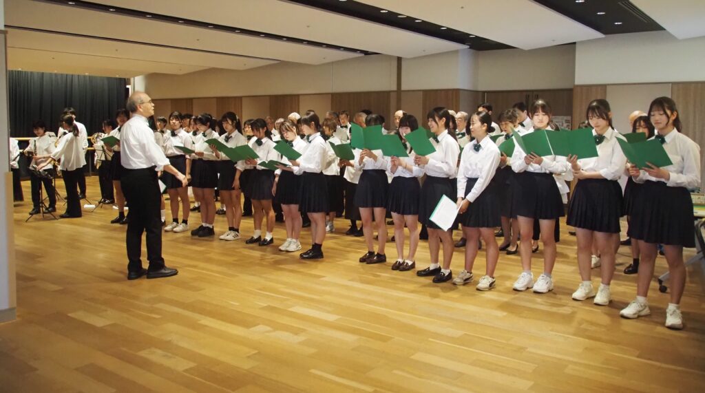 力強い演奏と爽やかなハーモニーで、「横濱三中校歌」と「緑ケ丘高校校歌」を高らかに歌い上げました。