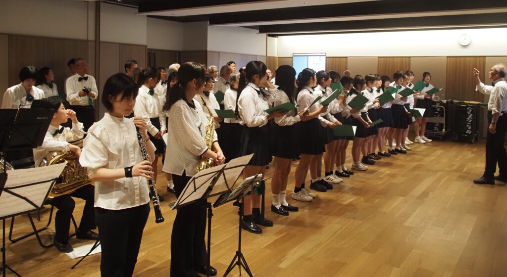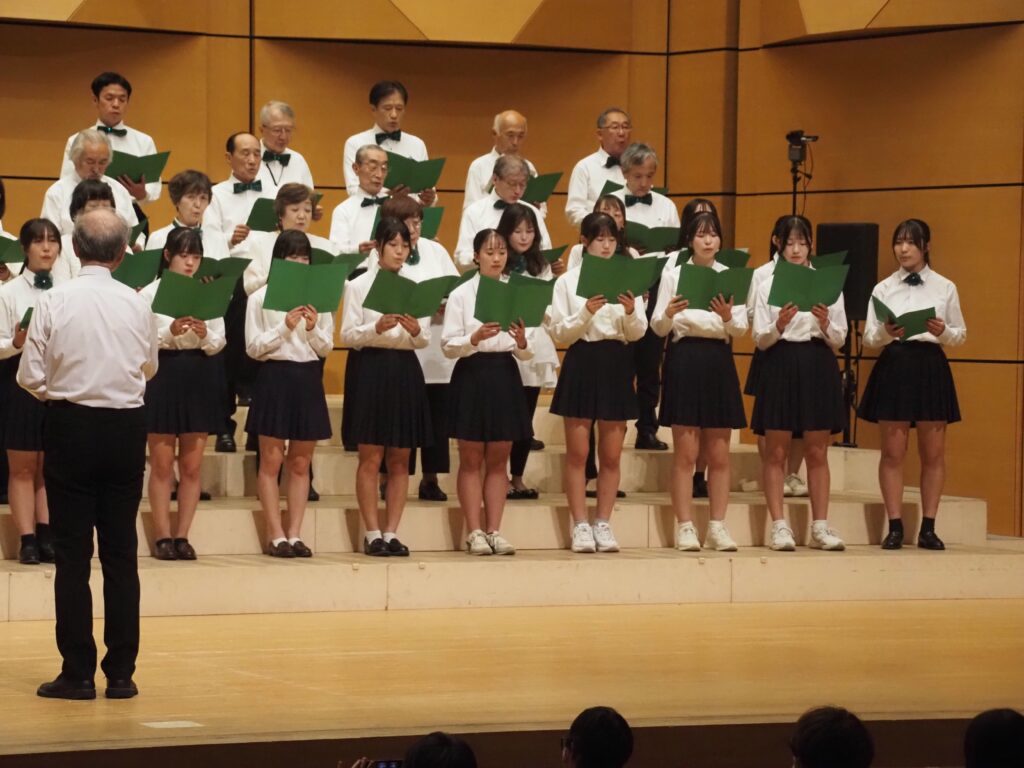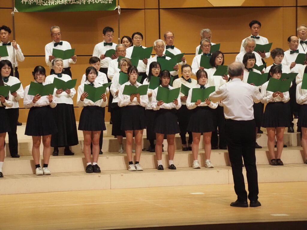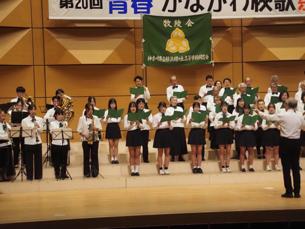 力強い演奏と爽やかなハーモニーで、「横濱三中校歌」と「緑ケ丘高校校歌」を高らかに歌い上げました。