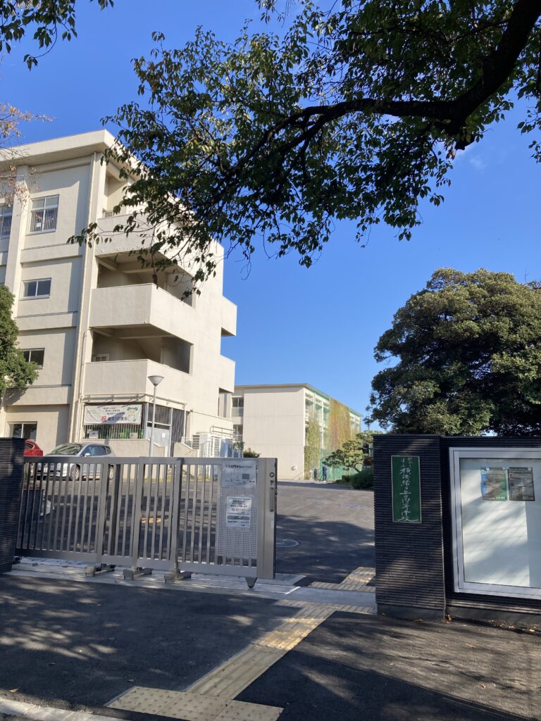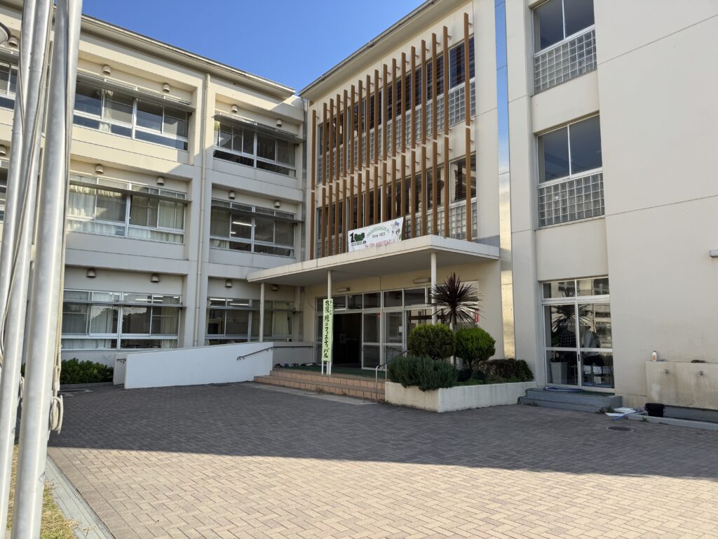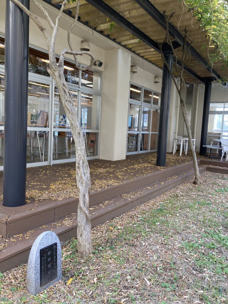 新しい校舎のファザードの木板の説明からはじまり、校訓”三徳一誠”の碑、 牧陵健児の碑の前をとおり、新しくなった正門、プールをとおり、歴史記念物?のような部室(生徒会館、100周年記念募金で改修予定)、南門前の”平台貝塚の案内板”など、在校当時を思い出すものでした。