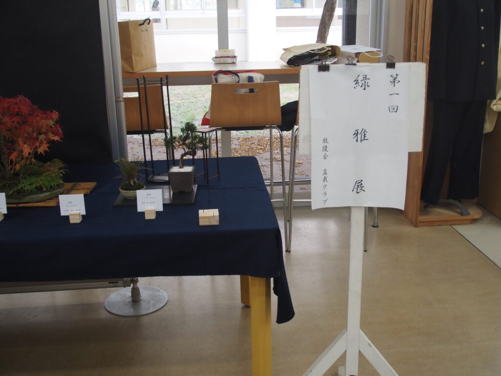 盆栽クラブ(同好会)のメンバーの作品展示 緑雅展 も多くの作品を展示し、各作品とも樹形が見事で素晴らしいものでした。